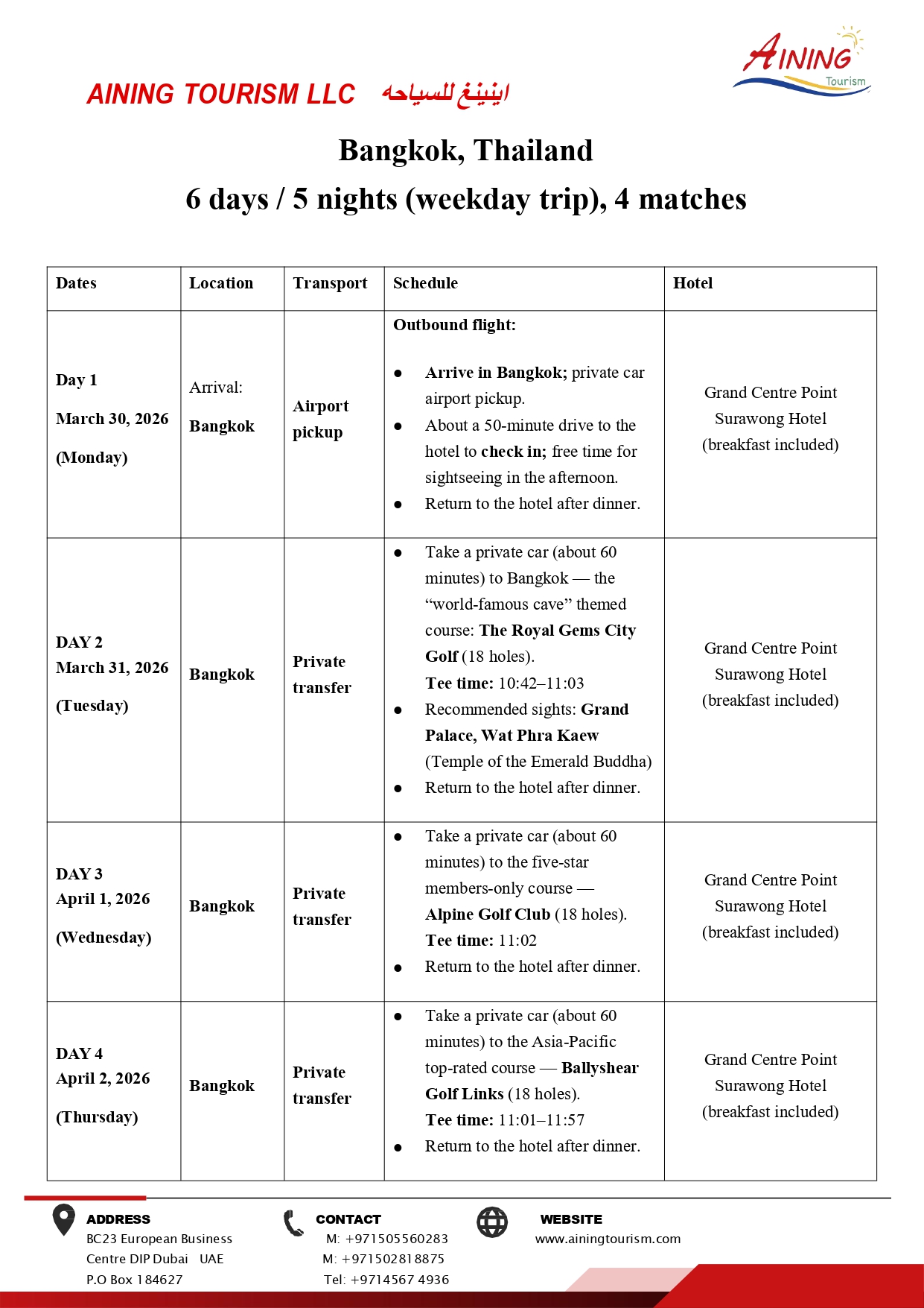 Bangkok, Thailand 6 days / 5 nights (weekday trip),4 matches