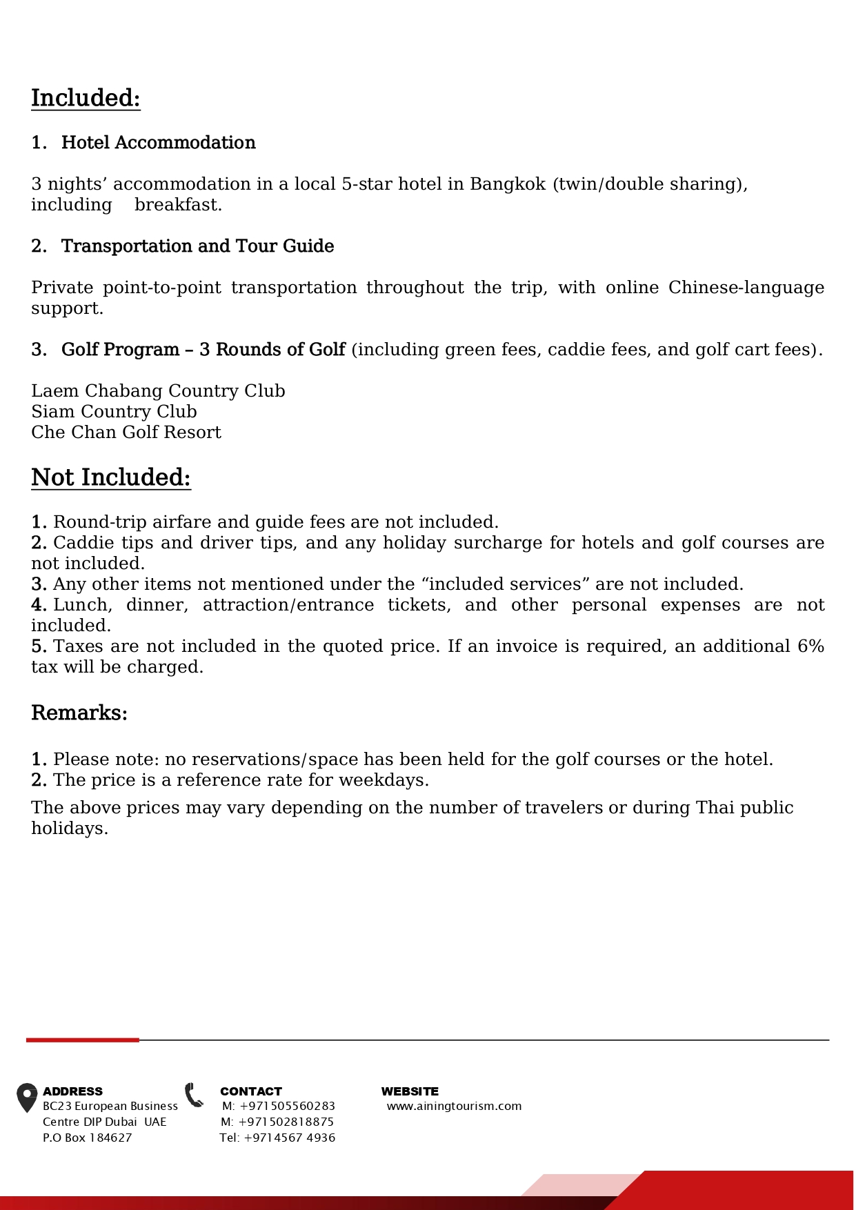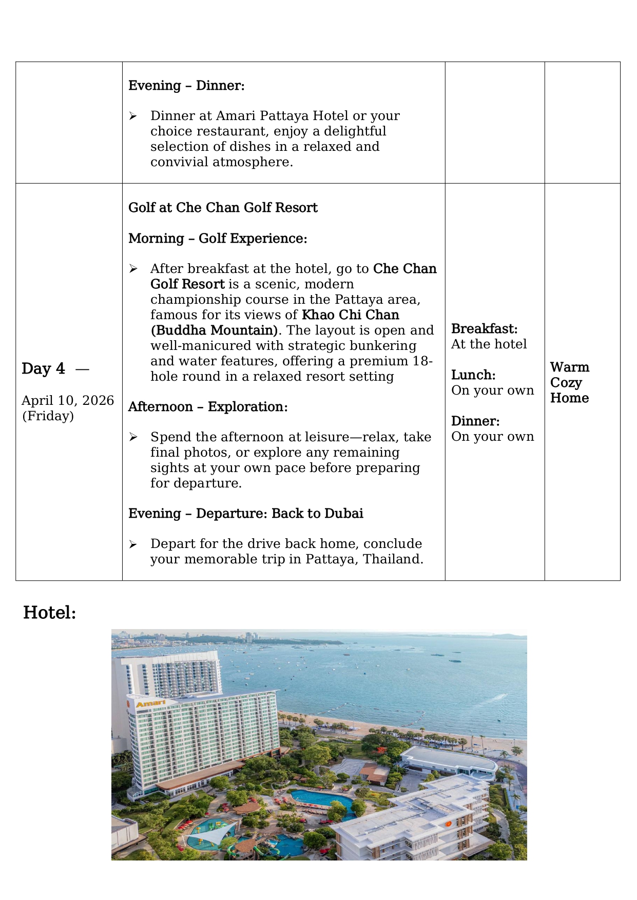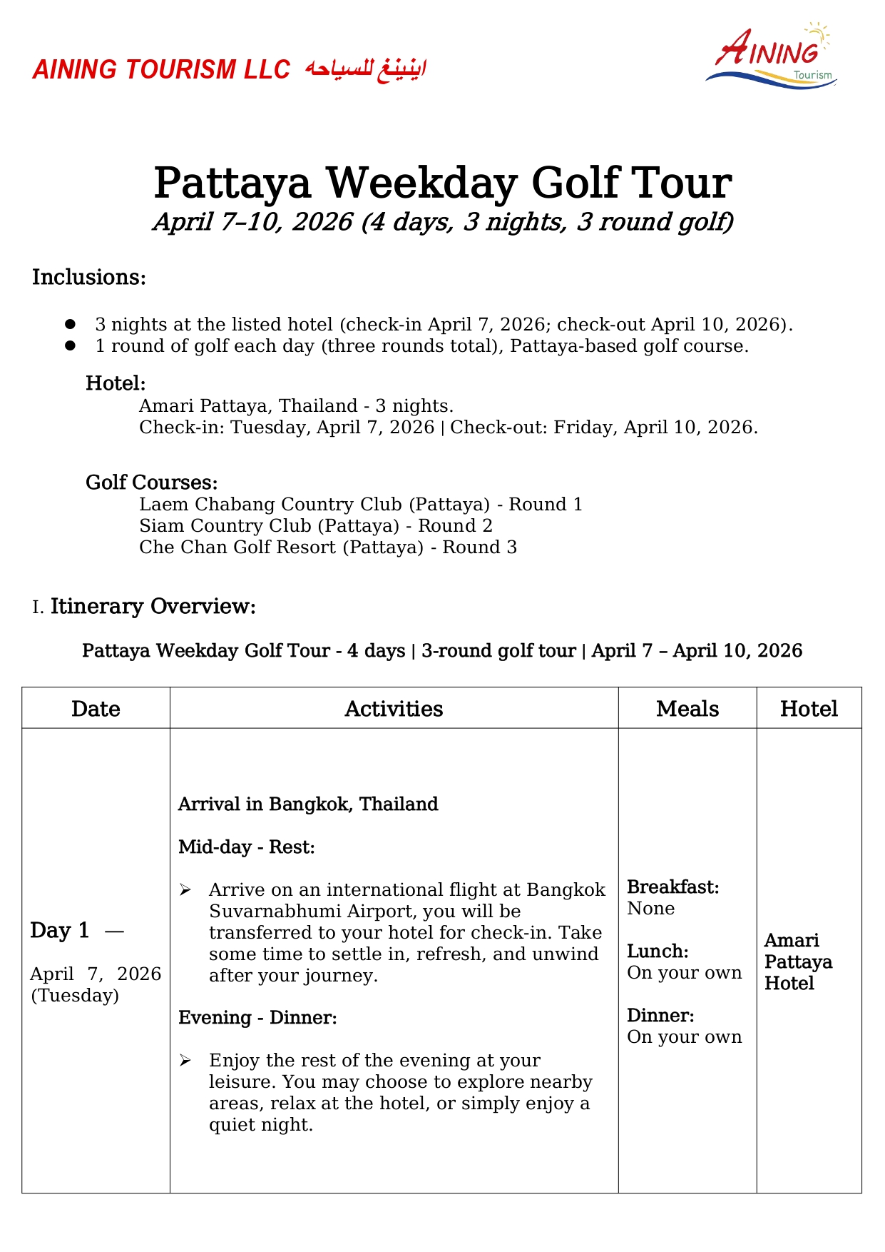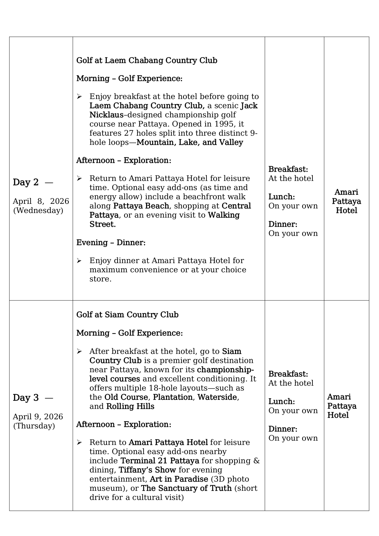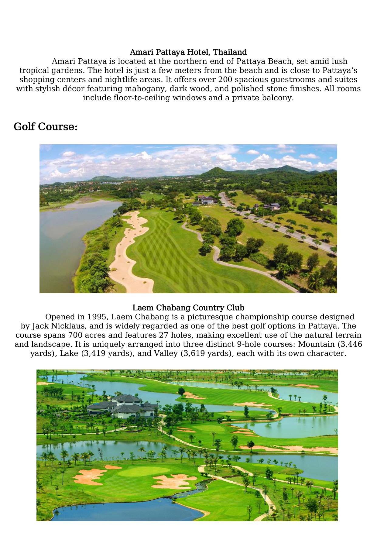 Pattaya Weekday Golf Tour (4 days, 3 nights, 3 round golf)